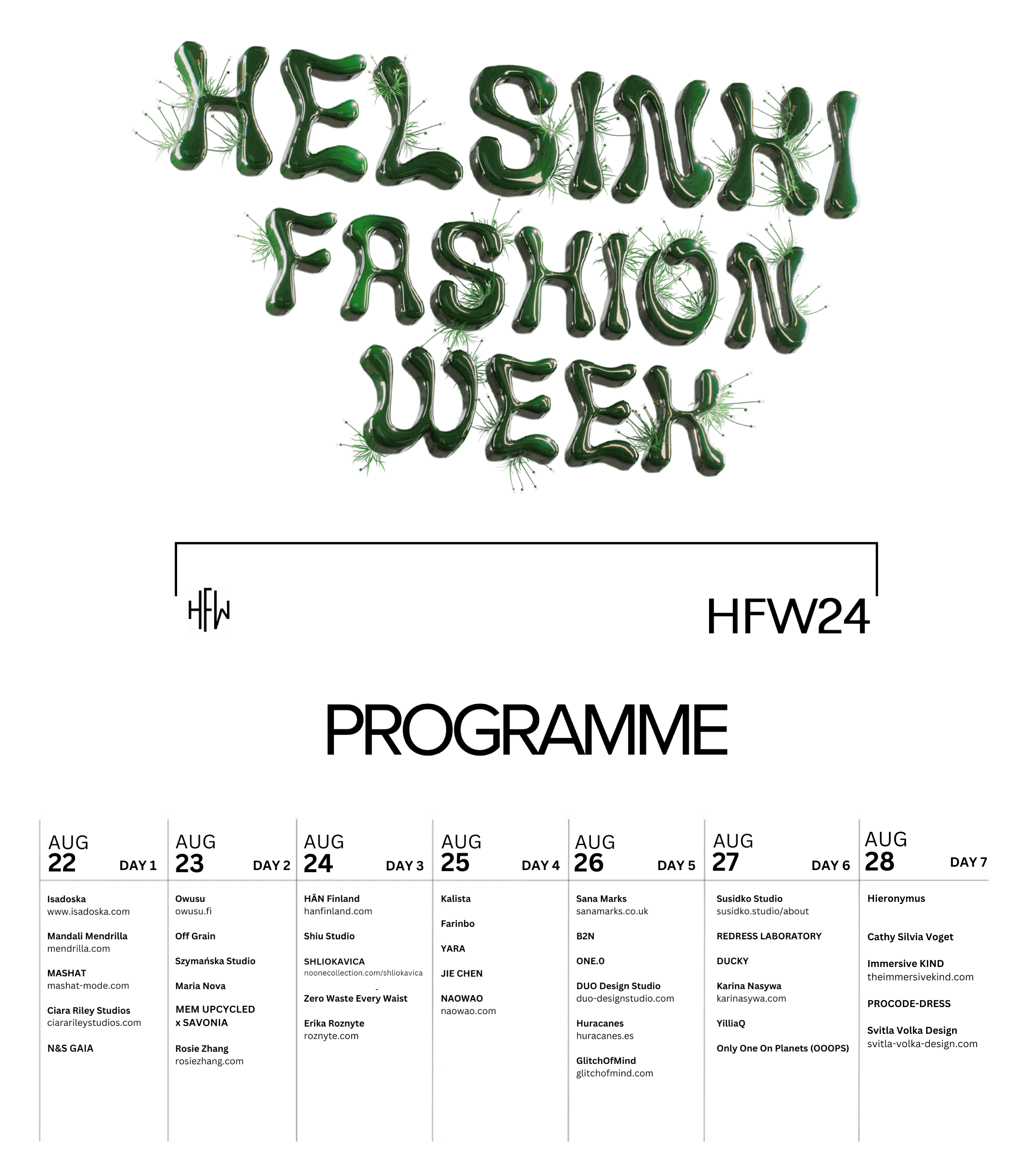 A fully 3D fashion showcaseHead to @helsinkifashionweekofficial on Instagram access the links to the digital showcases of the brands.